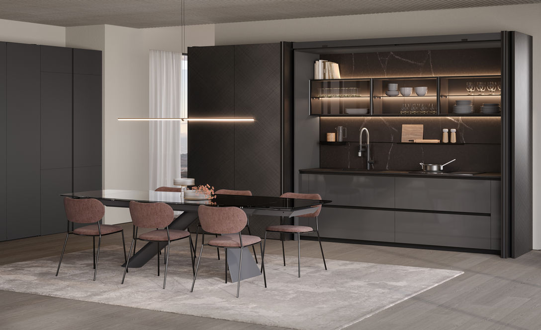Abbiamo progettato questa cucina della linea Shade Lab, che unisce estetica e funzionalità con cura dei dettagli e finiture laccate raffinate, offrendo uno spazio personalizzabile ed elegante.
